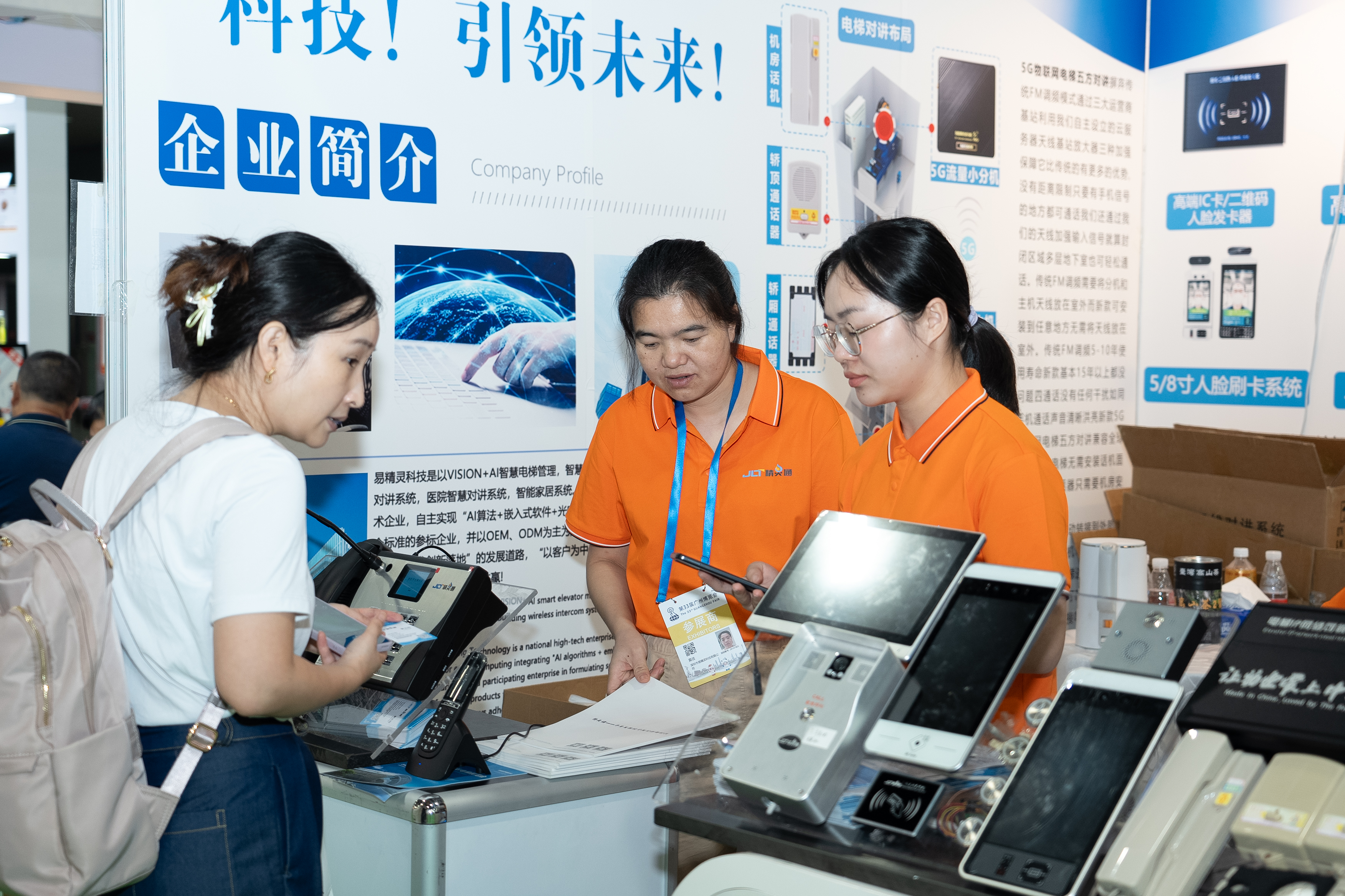 本届广州电梯展的参展企业包含了:杭州科锐曼、济南科泰液压、郑州中塔、苏州艾利维特、山东艾森斯电梯、安徽致尚电梯、珠海动力(腾讯连连)、上海斌腾扶手带、北京安泰科技。