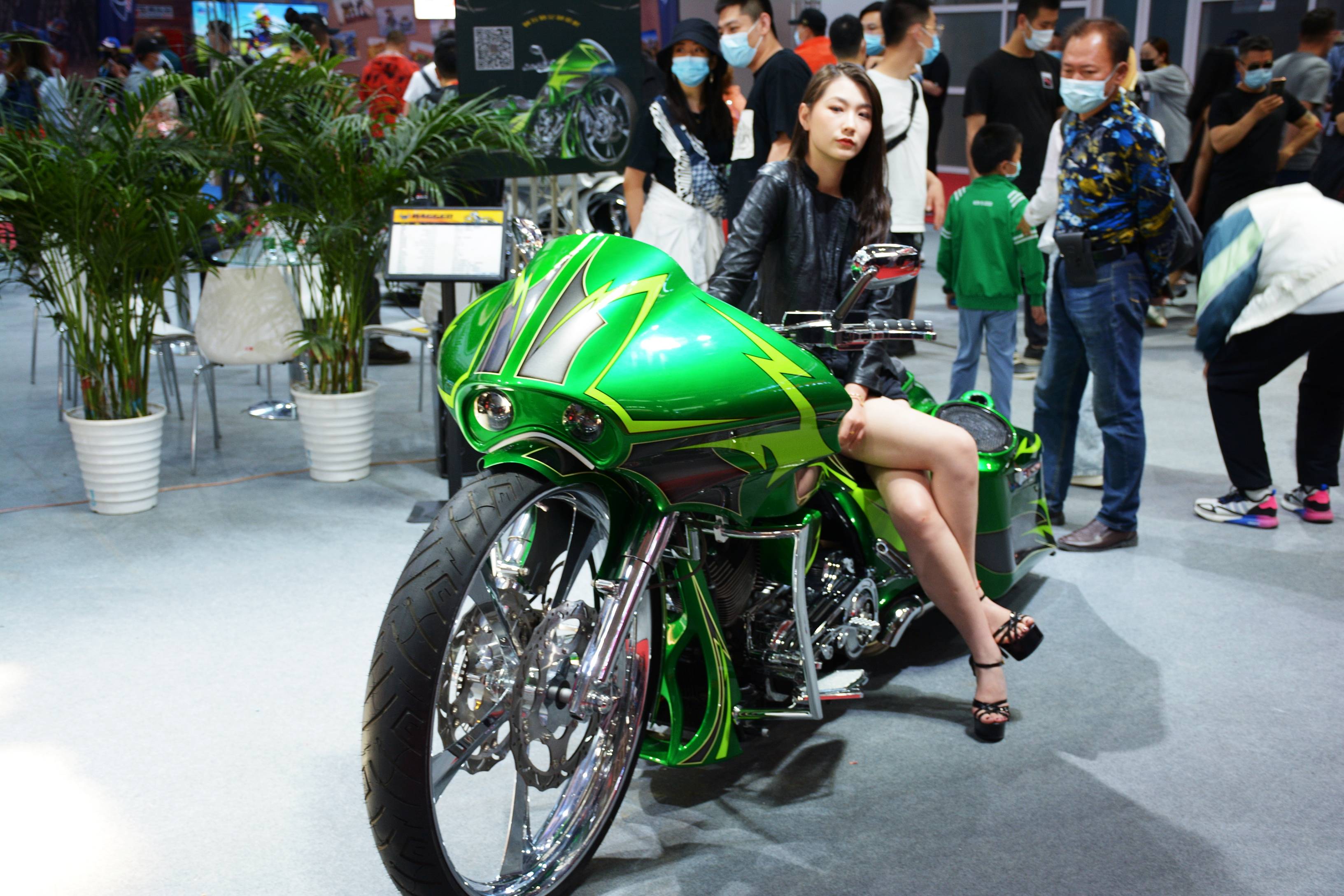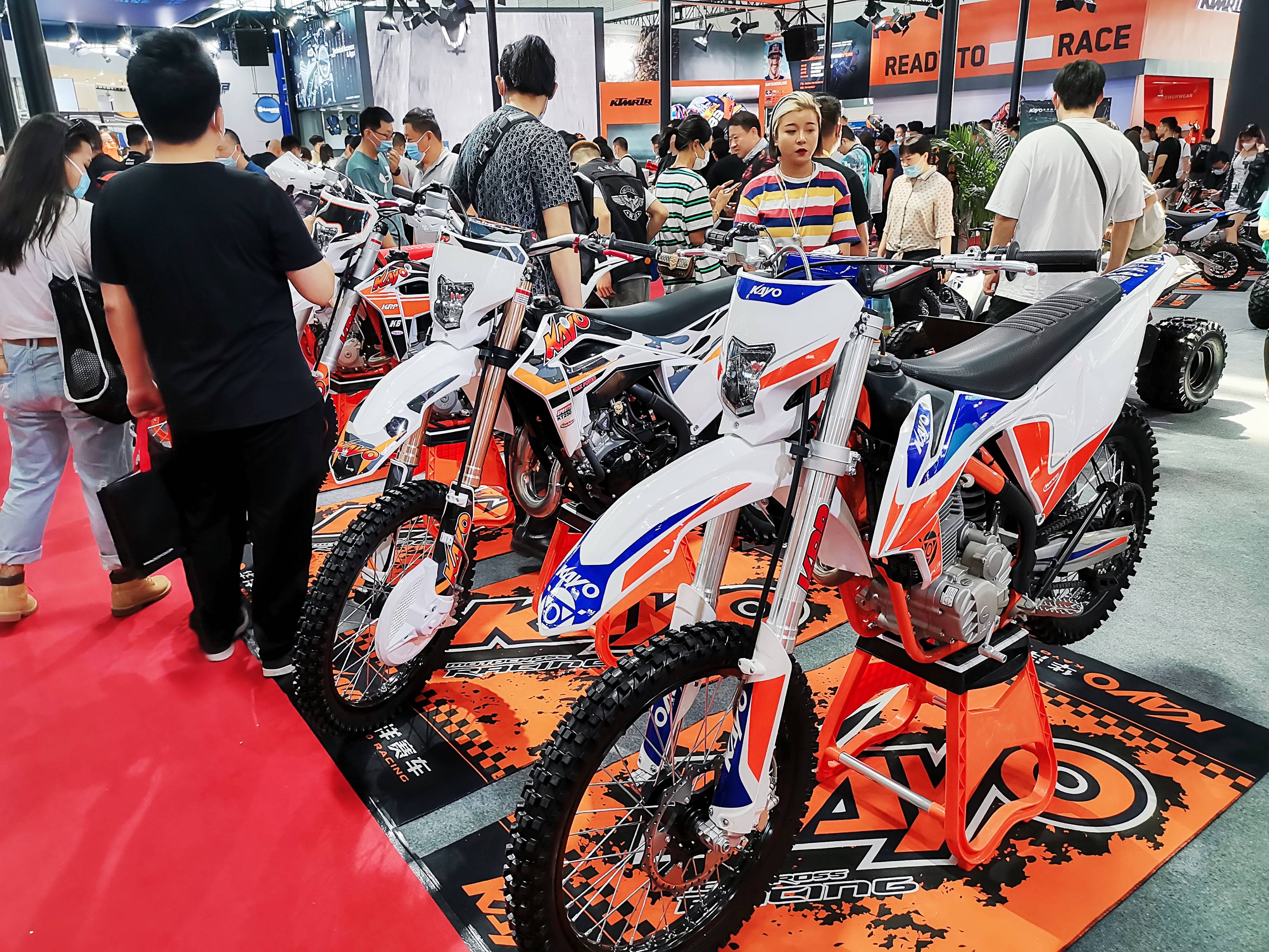 维修保养和零部件区: 摩托车用发动机、车架、减震器、制动器、轮毂、链轮、链条、轮胎、油箱、消声器、电器件、灯具、锁 具、润滑油、覆盖件及其他摩托车零部件装备、用品和技术区: 摩托车检测设备、摩托车维修保养设备、修理工具、摩托服饰及用具、头盔、运动防护装备用品、摩托车饰品