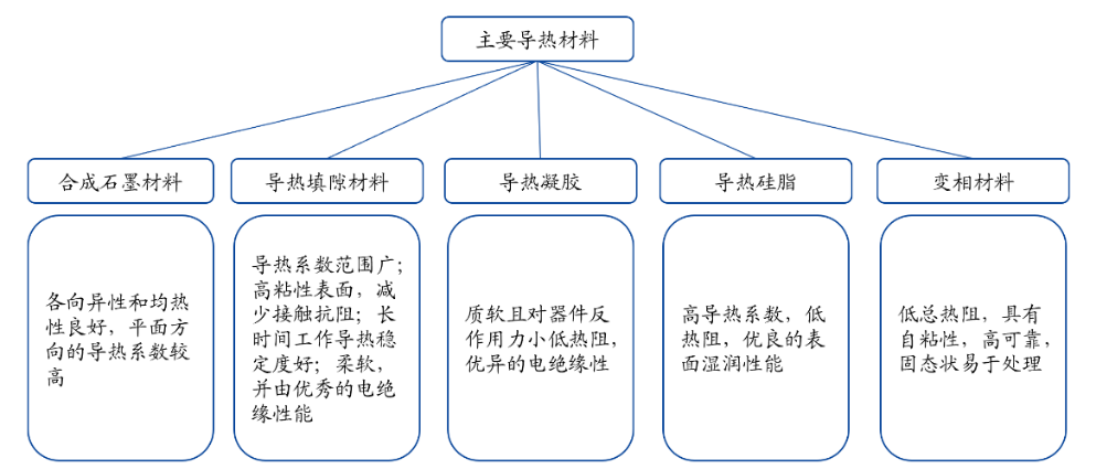热界面材料:导热矽胶布、薄膜/胶带、导热硅胶、导热硅脂、导热凝胶、导热灌封胶、导热垫/碳纤维导热垫、聚合物基复合导热材料,液态金属,导热灌封胶等