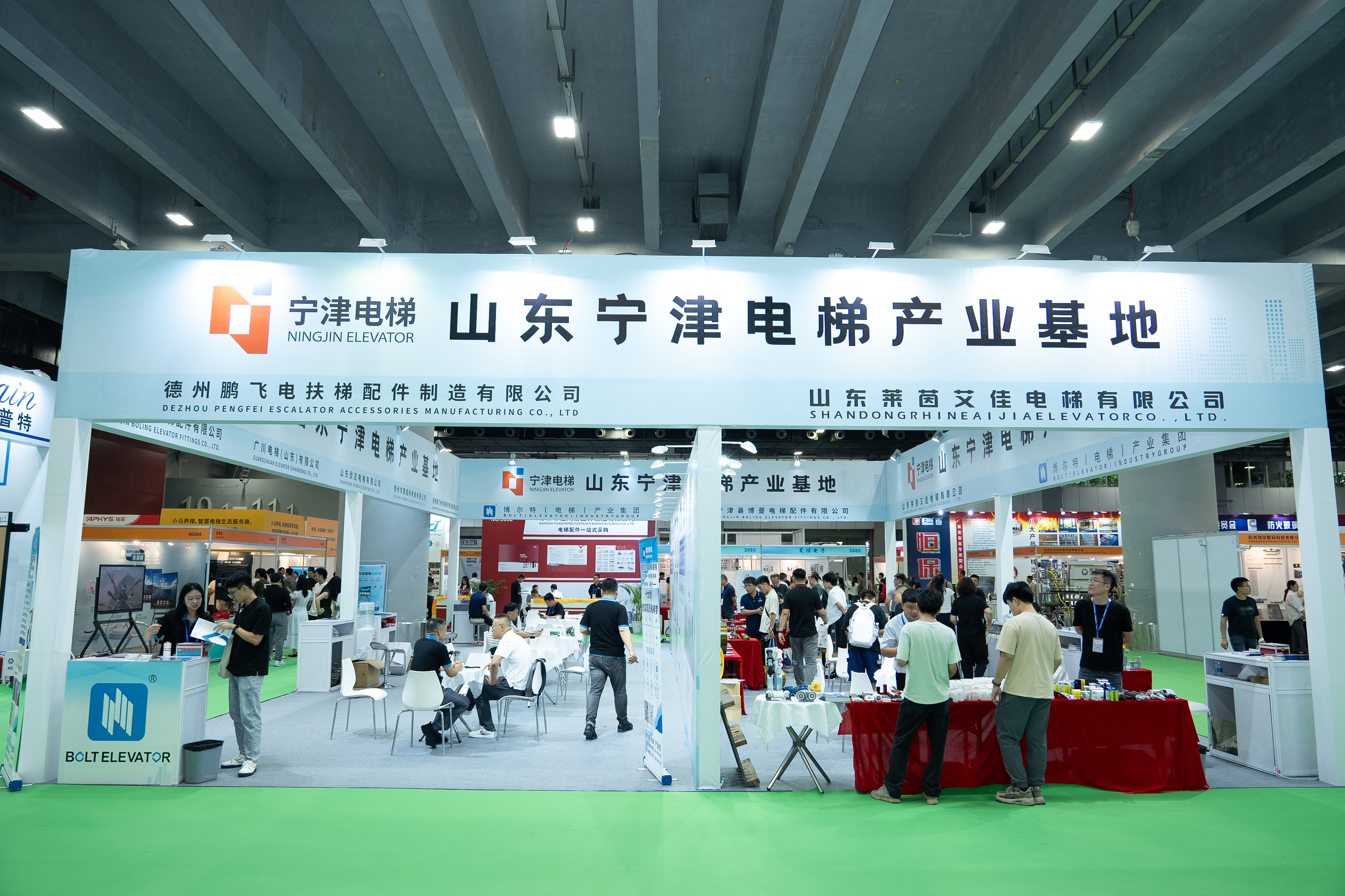 本届广州电梯展的参展企业包含了:杭州科锐曼、济南科泰液压、郑州中塔、苏州艾利维特、山东艾森斯电梯、安徽致尚电梯、珠海动力(腾讯连连)、上海斌腾扶手带、北京安泰科技。